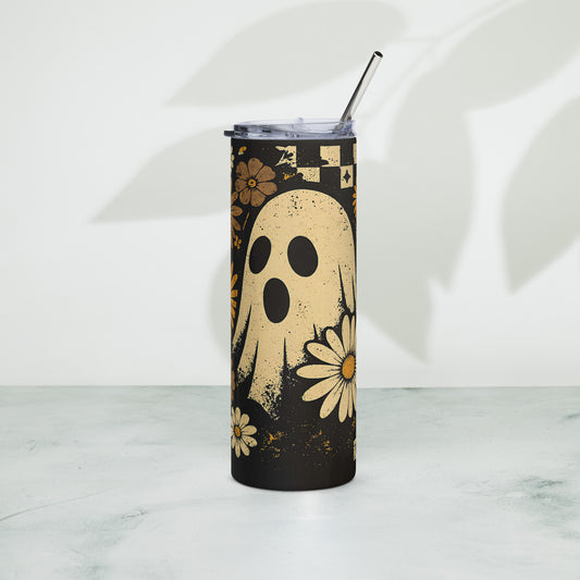 Spooky Ghost Floral Halloween Tumbler- Fall Season, Ghost Lovers Gift