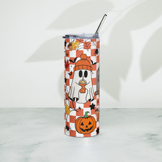 Spooky Plaid Ghost Coffee Tumbler- Fall Halloween Season gift for those Coffee Lovers