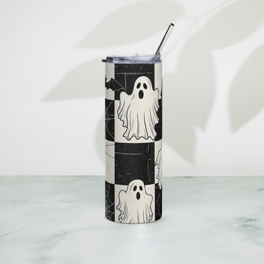 Spooky Black and White Plaid Halloween Ghost Tumbler