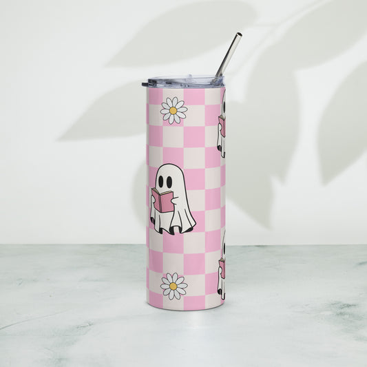 Pink Ghost Daisy Tumbler – 20oz Cute Halloween Cup for Fall-Loving Girls Who Love Pretty Spooky