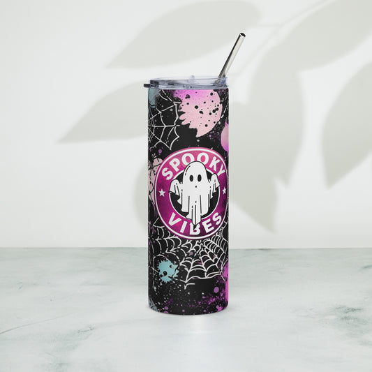 Spooky Vibes Ghost and Cob web Tumbler- Halloween Season Gift, Fall Lovers