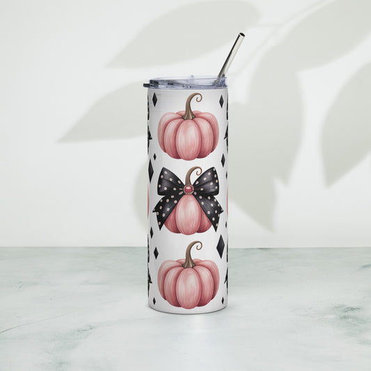 Pink Pumpkins With Black Bows tumbler- Fall Holiday Season, Pumpkin Lovers