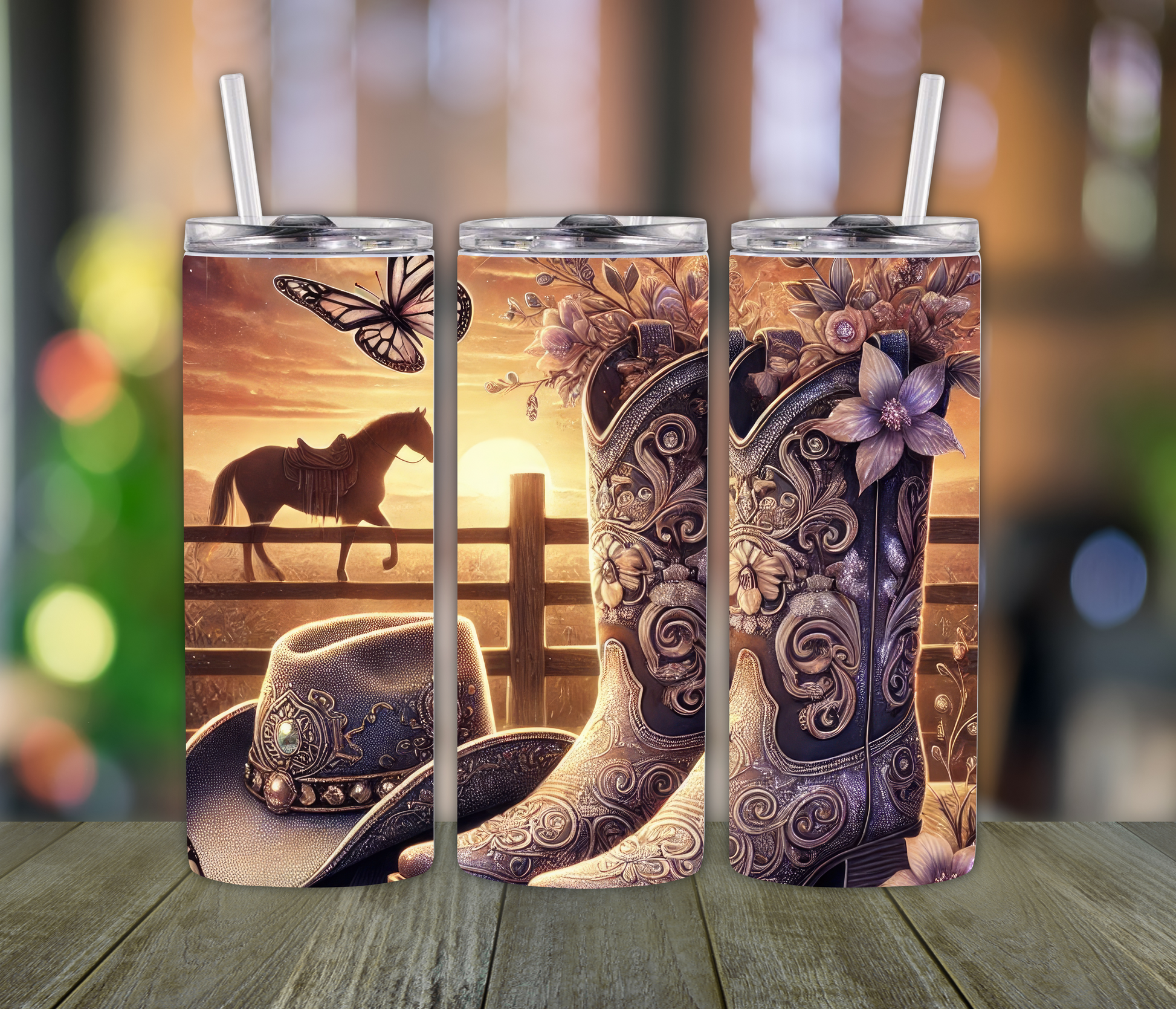 Country Girl Vibes Tumbler – 20oz Cup with Boots, Fields & Cowgirl Hat | Western Gift for Women